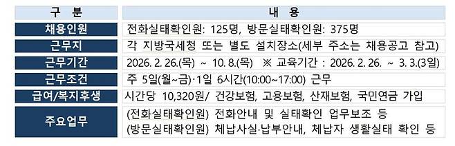 국세청이 2026년 체납관리단 운영을 위해 총 500명의 기간제 근로자를 채용한다고 공식 발표했습니다.