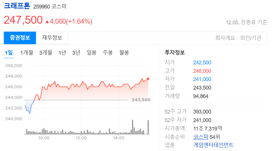 Q7. 크래프톤의 현재 주가는 얼마인가요?