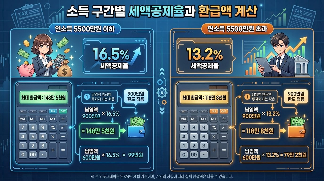 소득 구간별 세액공제율과 환급액 계산 🧮