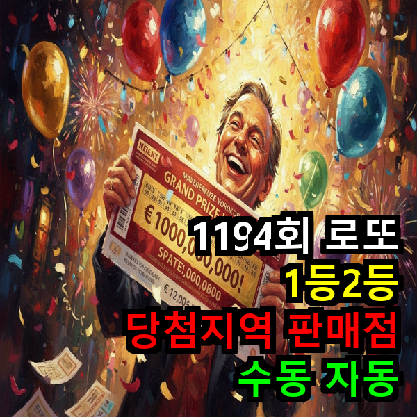2025년 10월 18일 토요일에 추첨한 로또 1194회 결과가 발표되었습니다. 이번 회차에서는 무려 28명의 1등 당첨자가 탄생하여 전국을 떠들썩하게 만들었습니다. 1등 당첨금은 각 9억 8,515만 원으로, 많은 당첨자가 나오면서 금액은 다소 낮아졌지만 여전히 인생 역전의 꿈을 이룬 행운의 주인공들이 대거 등장했습니다.