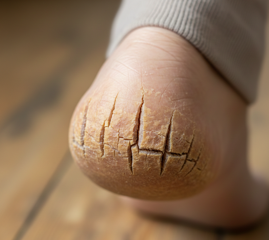 단순히 건조해서 생기는 현상일 수도 있지만, 때로는 발뒤꿈치 갈라짐이 내과적인 질환을 예고하는 신호일 수 있습니다. 특히 당뇨병 환자의 경우 말초 신경 병증으로 인해 땀 분비가 조절되지 않아 발이 극도로 건조해질 수 있습니다. 당뇨 환자에게 발 갈라짐은 작은 상처가 궤양으로 번질 수 있는 위험한 징후이므로 각별한 주의가 필요합니다.